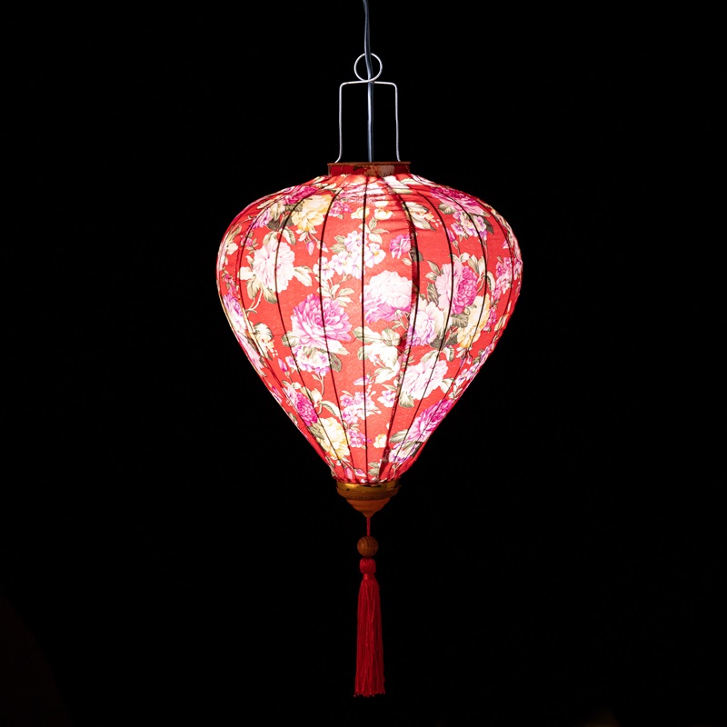 Это традиционные подвесные фонарики ручной работы, изготовленные из шелкового материала с элегантным цветочным узором, которые делают его изысканным и красивым.