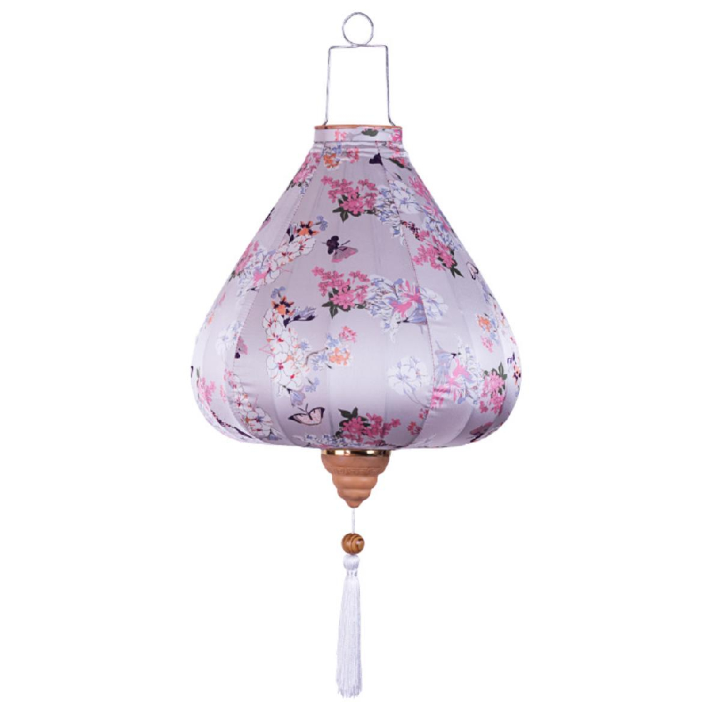 Это традиционные подвесные фонарики ручной работы, изготовленные из шелкового материала с элегантным цветочным узором, которые делают его изысканным и красивым.