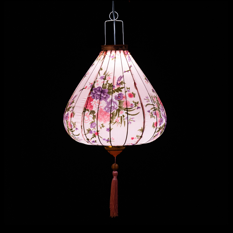 Это традиционные подвесные фонарики ручной работы, изготовленные из шелкового материала с элегантным цветочным узором, которые делают его изысканным и красивым.
