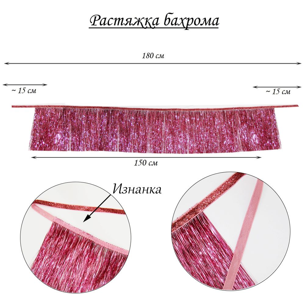 Растяжка бахрома 20см х 1,8м, металлик розовый