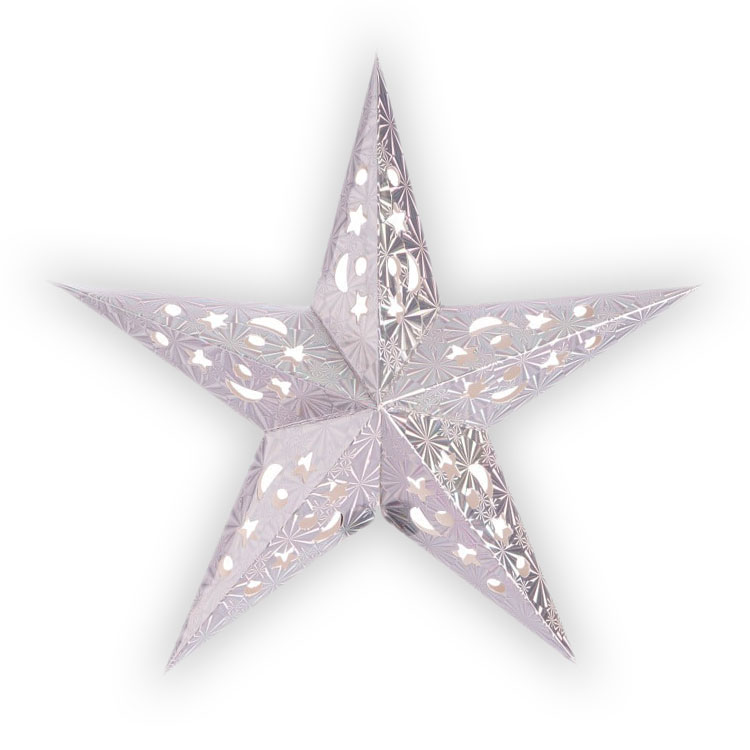 Звезда бумажная 30 см голографическая серебряная