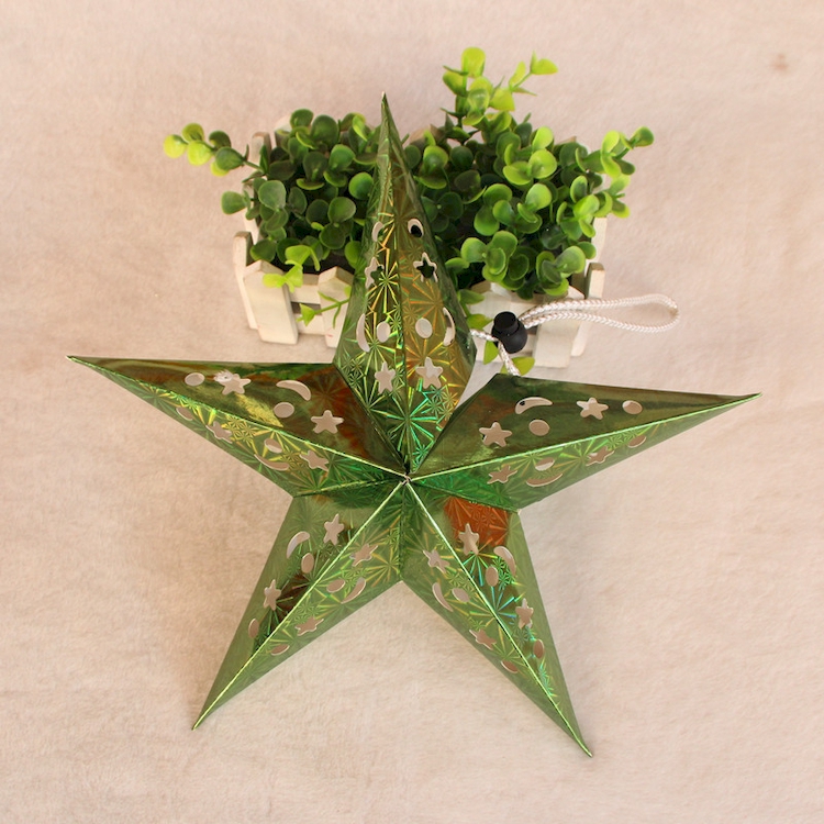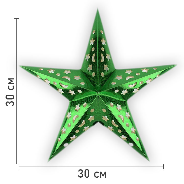 Звезда бумажная 30 см голографическая зеленая