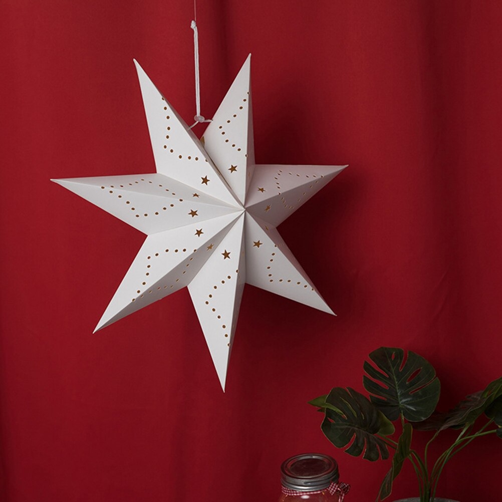 Семиконечная объемная звезда 45 см — великолепный декор из тонкого перфорированного картона. Создает красивые световые эффекты. Поставляется в сложенном виде, в комплекте шнур для фиксации объема и подвеса.